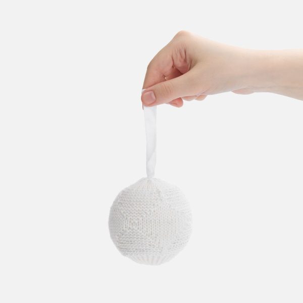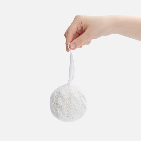 Настоящее воплощение зимнего шарма в вязаной миниатюре. Геометрический узор придает шарику современный вид, а вкрапления серебристого люрекса создают эффект праздничного