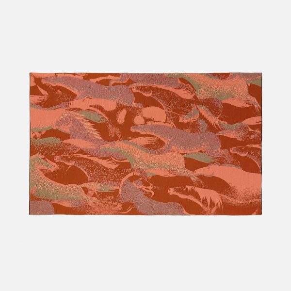 Плед «Огнегривые» масштабно воплощает символ 2026 года — Красную Огненную Лошадь. Табун лошадей, словно охваченных пламенем или заревом, в едином
