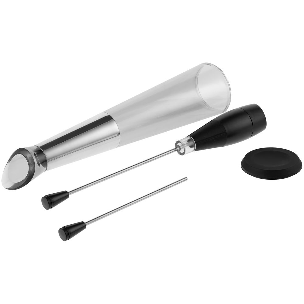 диаметр 6,5 см; высота 36,6 см; длина насадки для бутылки 24 см, для бокала — 16 см; упаковка: 7x7x37,5/41 см |