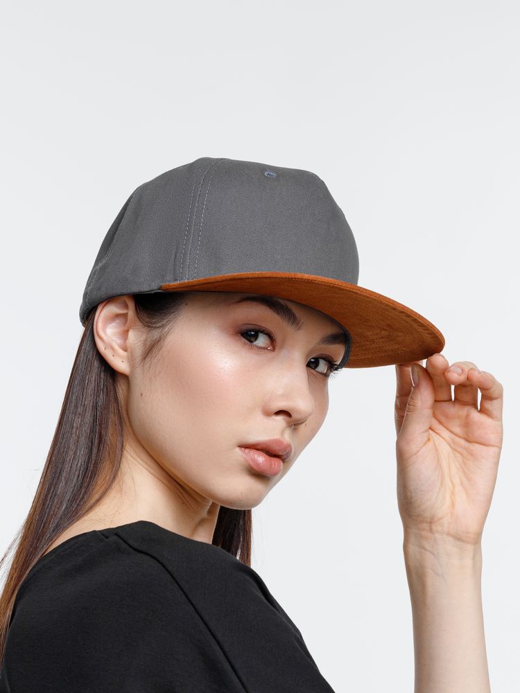 - Плотный контрастный прямой козырек из мягкой, приятной на ощупь ткани с велюровым эффектом