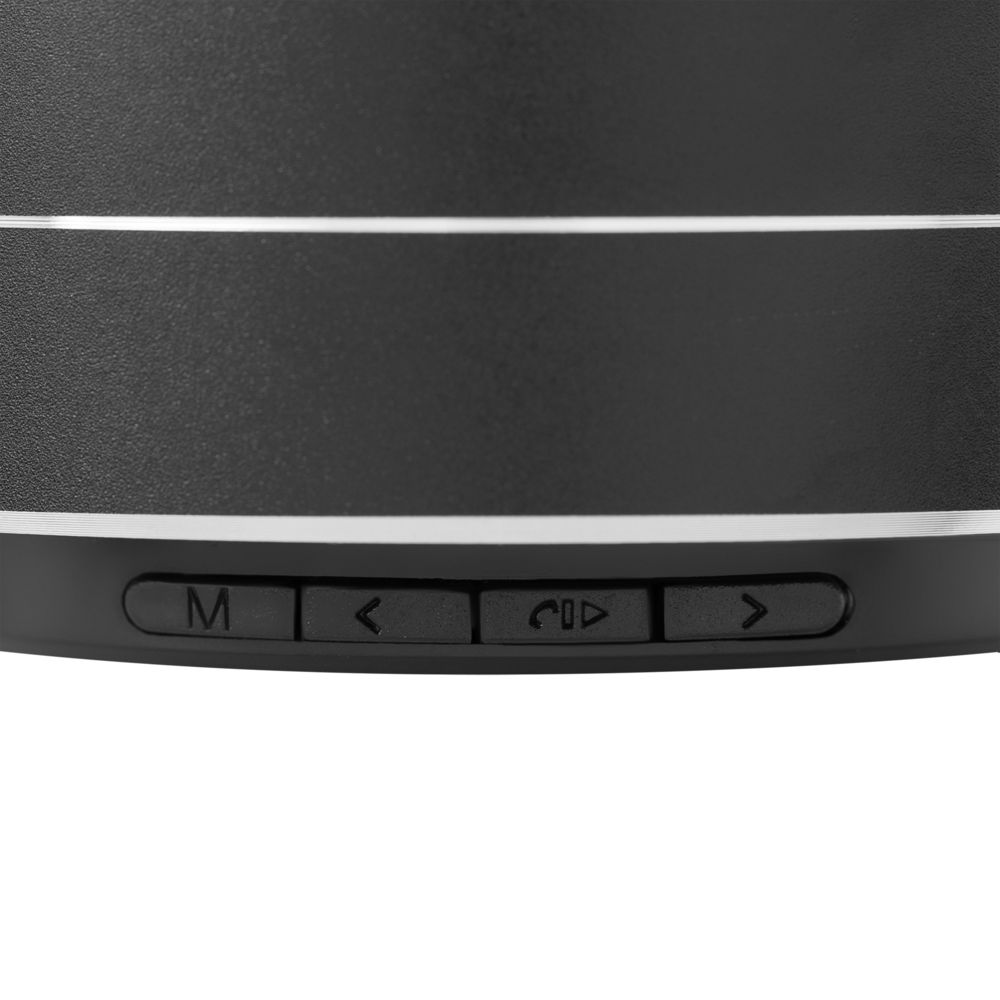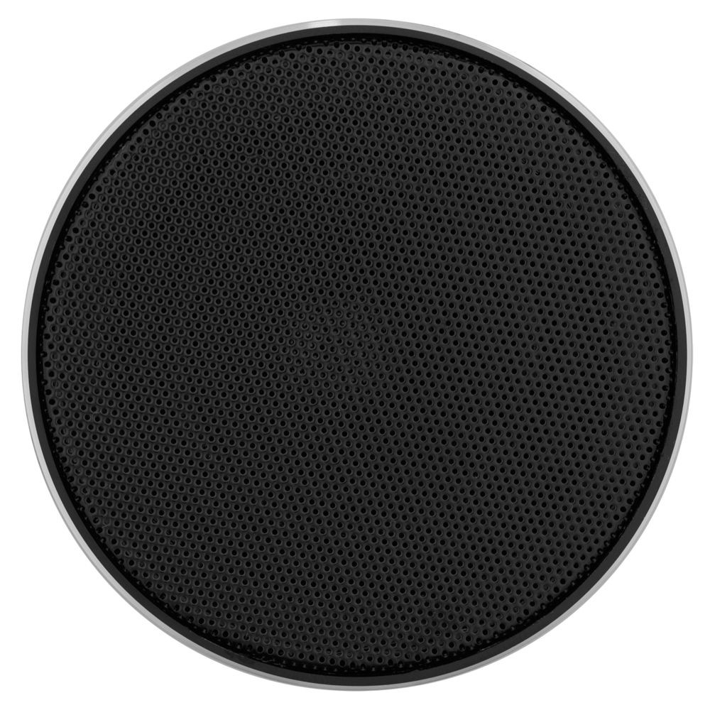 Колонка в металлическом корпусе выглядит стильно и солидно. Использовать ее можно даже на открытом воздухе — у нее достаточно мощный звук. Можно использовать для переговоров по громкой связи.