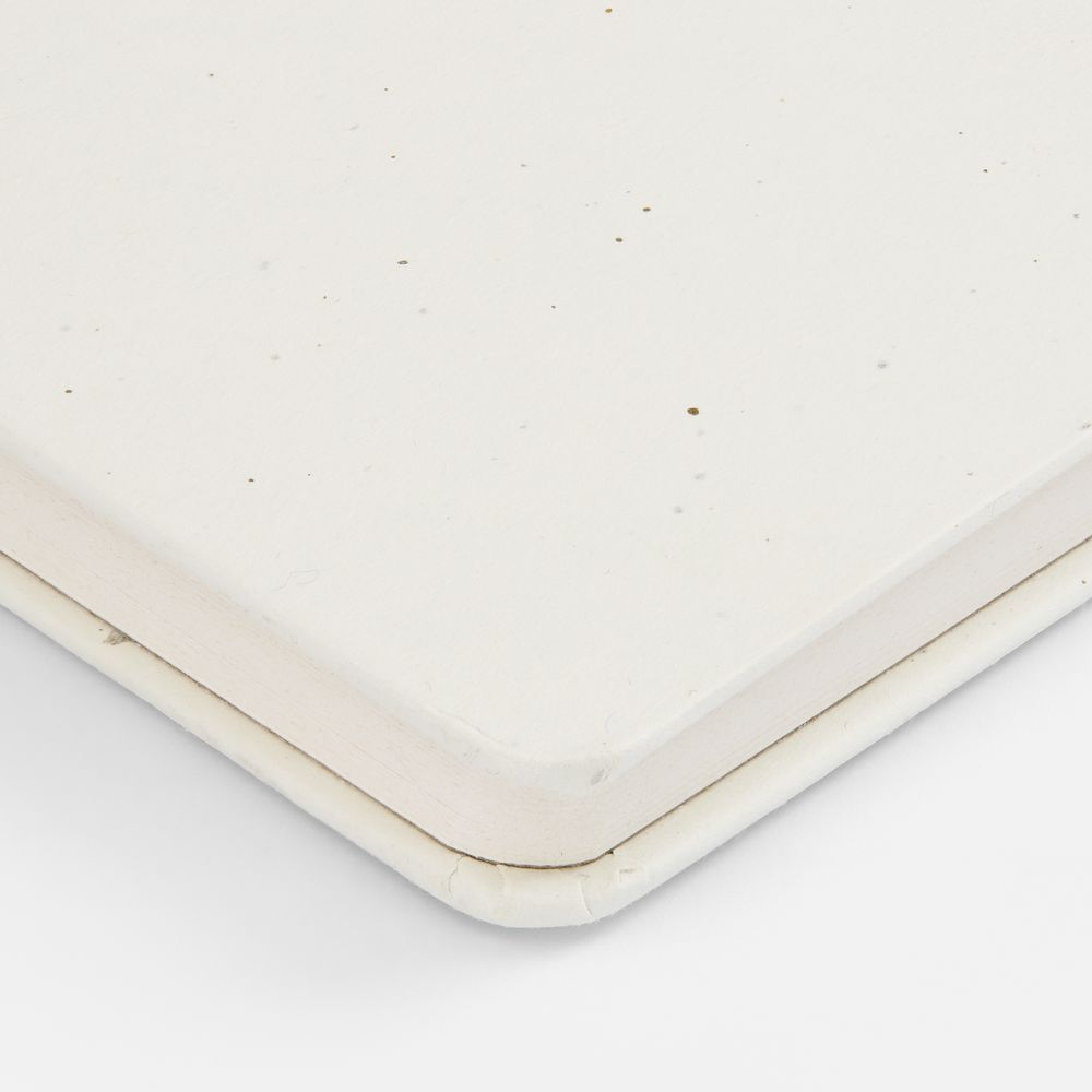 Бумага и обложка произведены из переработанных пакетов из под молока. Обложка из картона плотностью 140 г/м² .