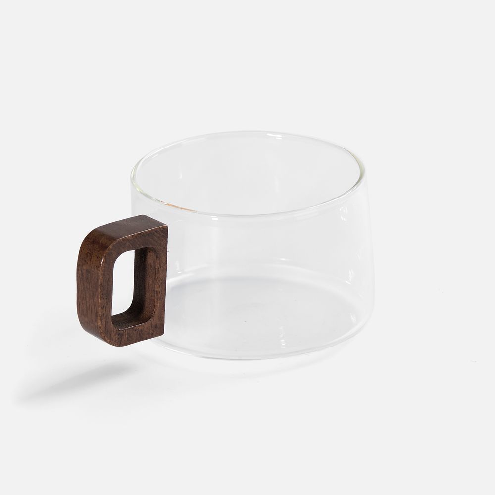 Прозрачное стекло подчеркивает цвет чая, кофе или травяного сбора, удобная деревянная ручка не нагревается и комфортно лежит в руке, подставка-блюдце в комплекте защищает стол от капель и добавляет эстетики.