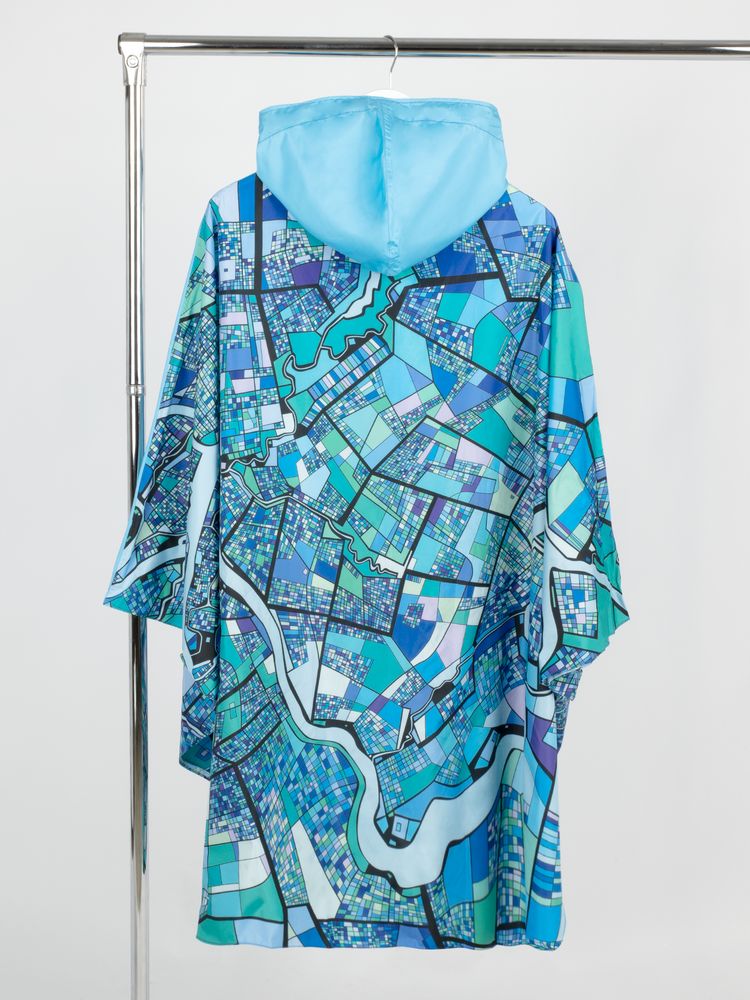 Легкий городской дождевик-пончо с регулируемым капюшоном из влагоустойчивого материала подходит для защиты в непогоду, свободно одевается поверх одежды и небольшого рюкзака.
