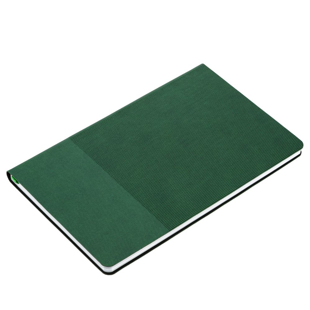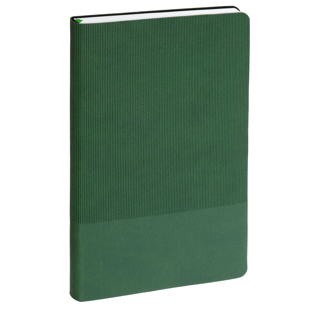 Ежедневник с гибкой обложкой, выполнен из материала Canyon, зеленый FF, дополнен ляссе в цвет обложки. Блинтовое тиснение на обложке создает эффект вязаного полотна.