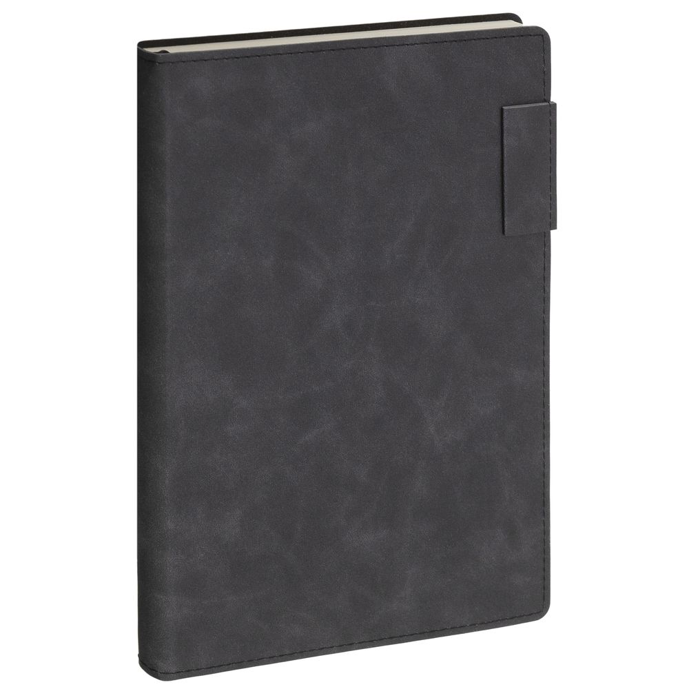Ежедневник 17х24 см, с гибкой обложкой, выполнен из материала Nubuck Touch, черный АА, дополнен петлей-лейблом для ручки и двойным ляссе в цвет материала.
