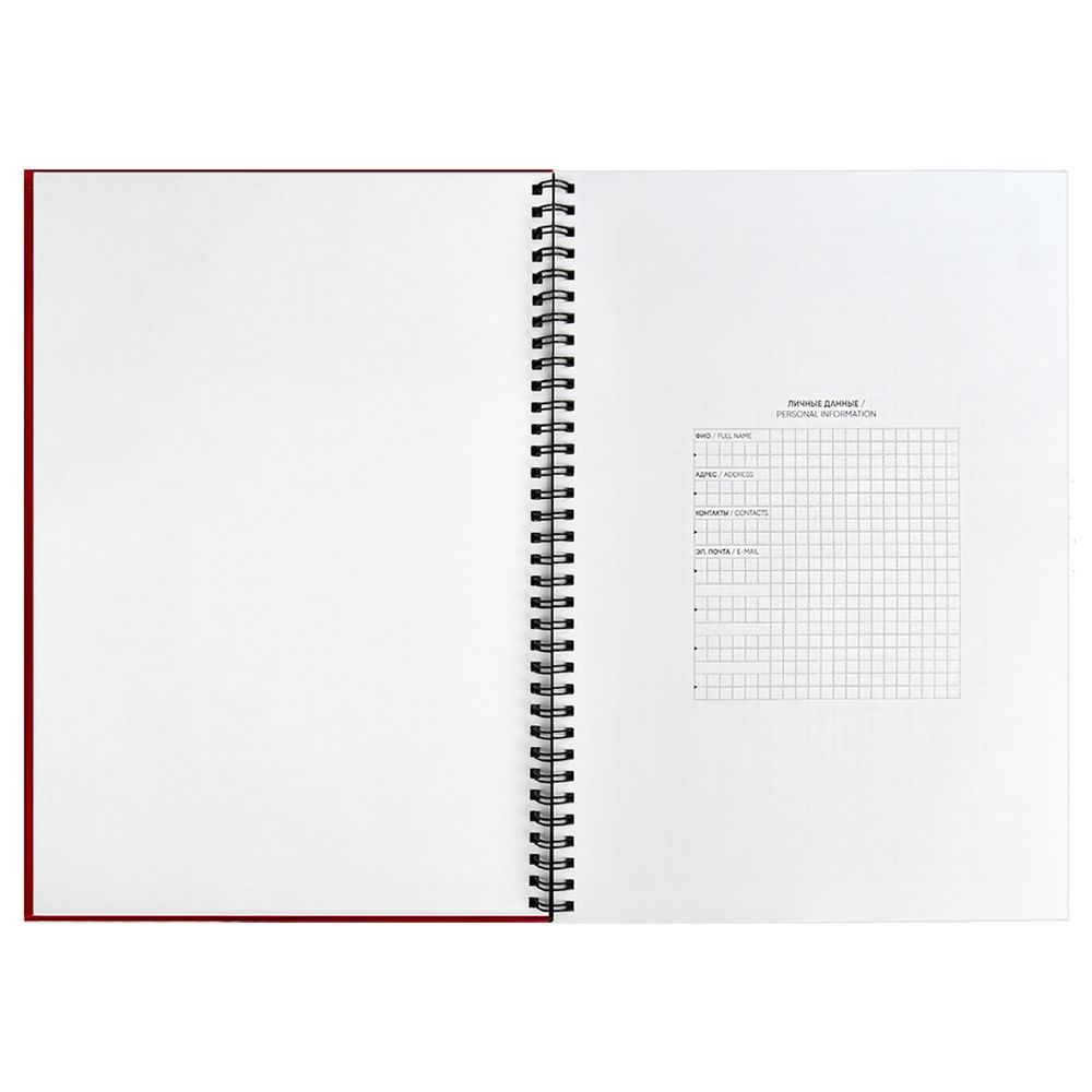 Ежедневник с интегральным переплетом и обстрочкой по периметру на открытой пружине.