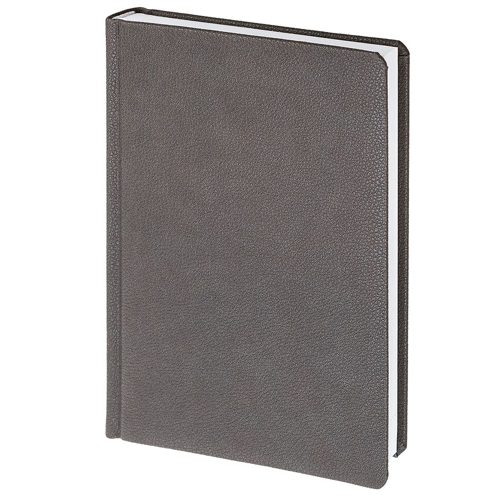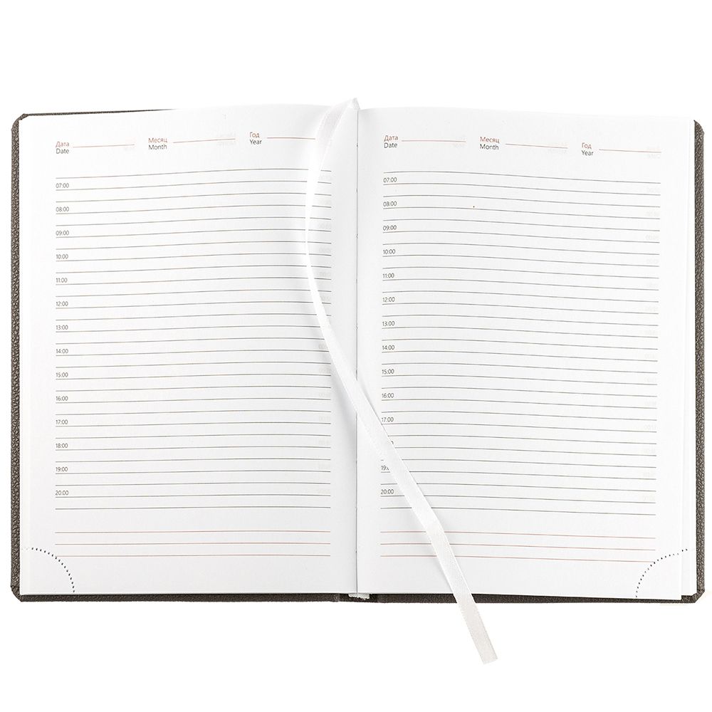 Ежедневник в твердой обложке c поролоном, выполнен из материала La Fite, темно-серый EE, дополнен ляссе белого цвета.