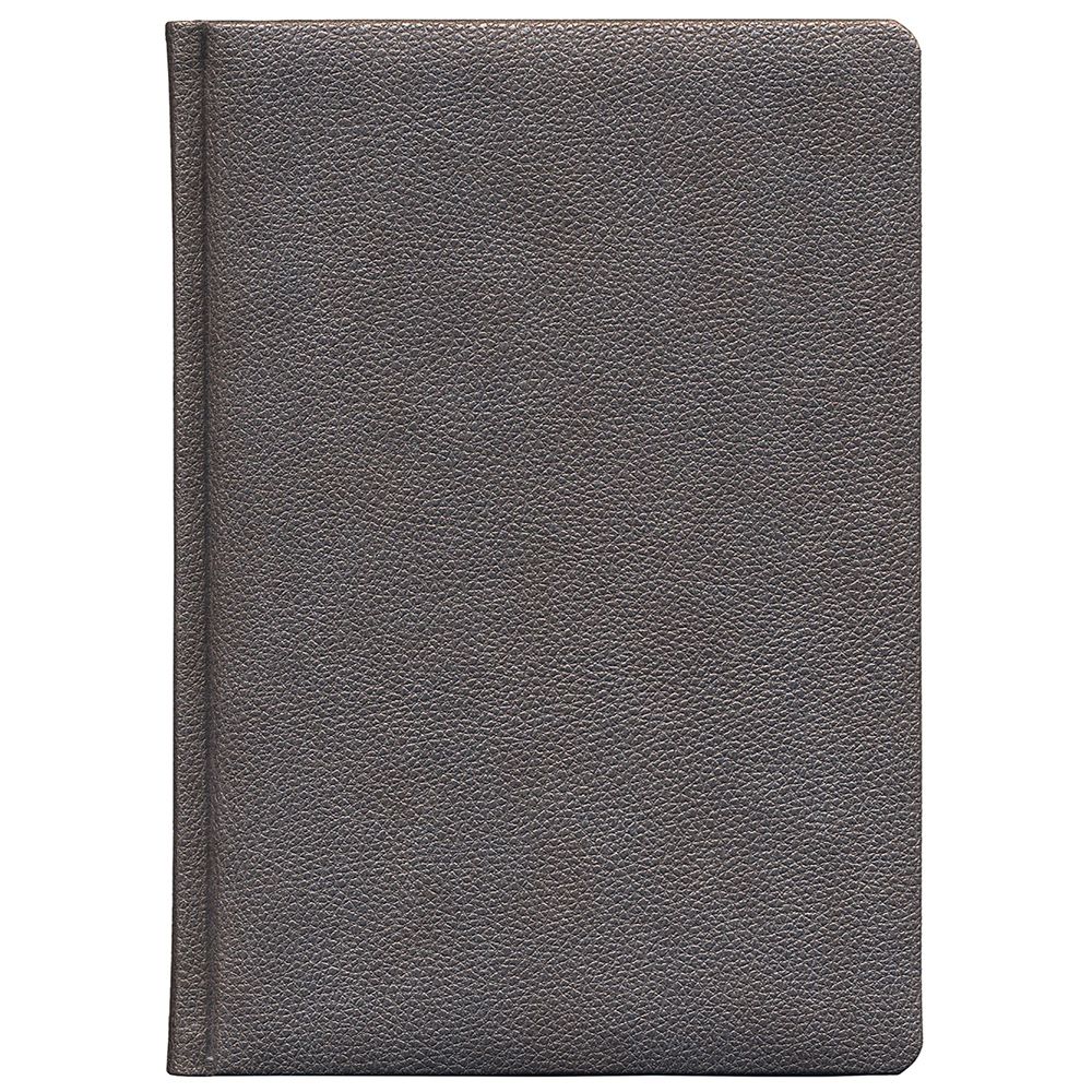 Ежедневник в твердой обложке c поролоном, выполнен из материала La Fite, темно-серый EE, дополнен ляссе серого цвета и прошивкой по периметру обложки.