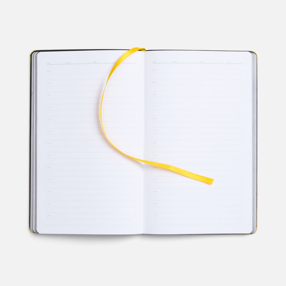 Обложка ежедневника Trait — это максимальная концентрация черного, подчеркнутая яркой полосой цветного среза.