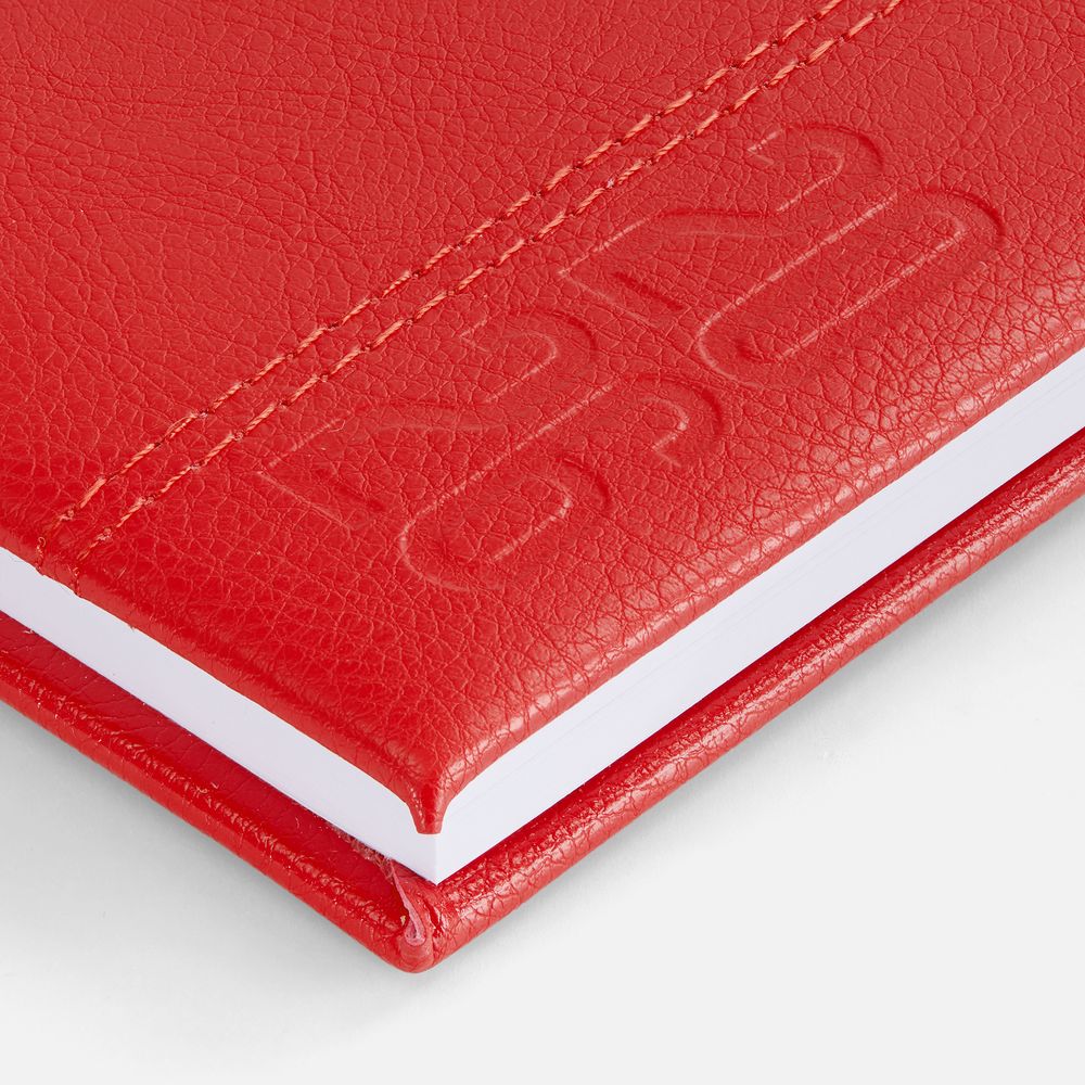Еженедельник с твердой обложкой с поролоном из искусственной кожи, дополнен декоративной строчкой, капталом и ляссе в цвет.
