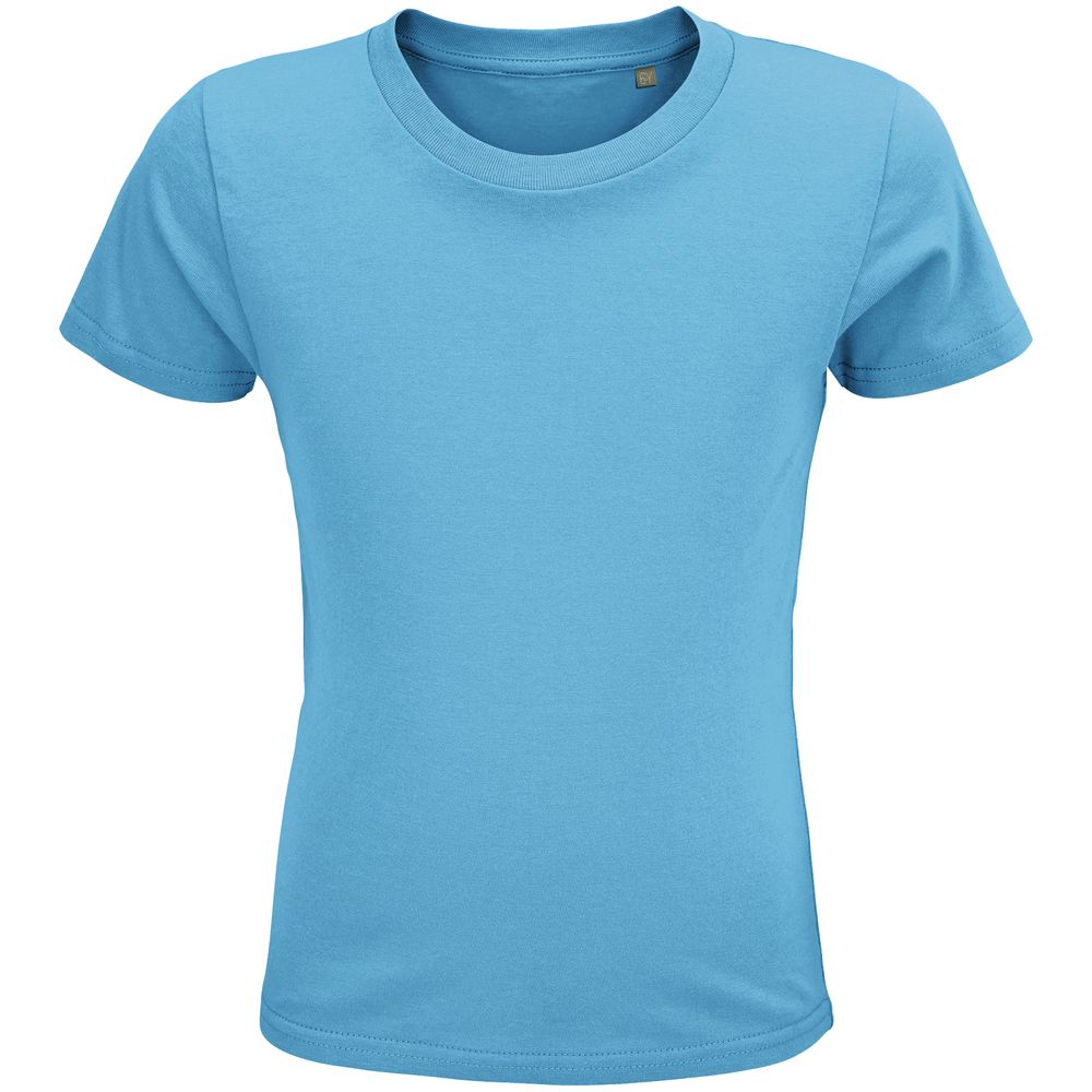 Детская кроеная облегающая футболка из органического хлопка с круглым вырезом.
