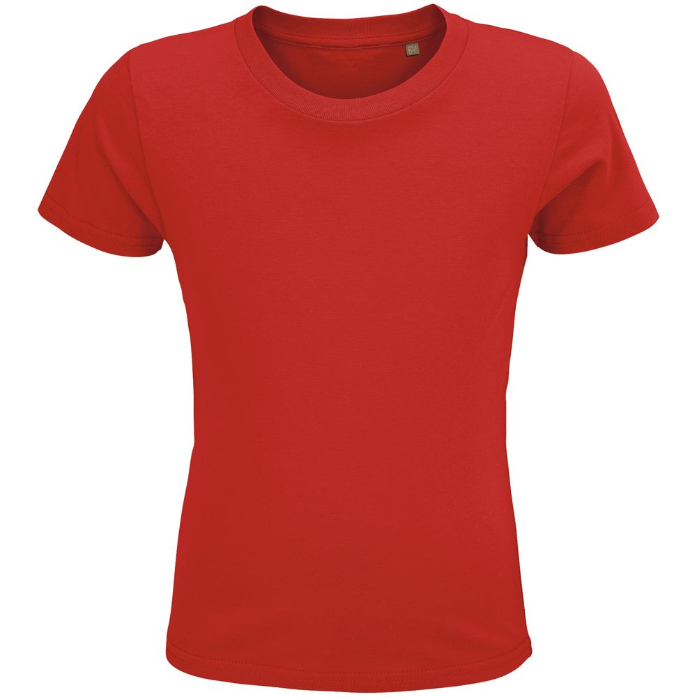 Детская кроеная облегающая футболка из органического хлопка с круглым вырезом.