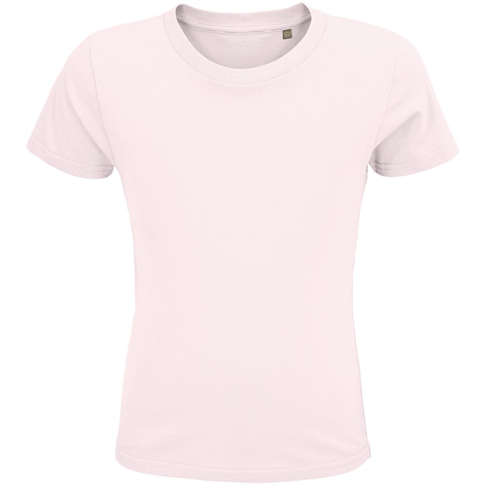 Детская кроеная облегающая футболка из органического хлопка с круглым вырезом.