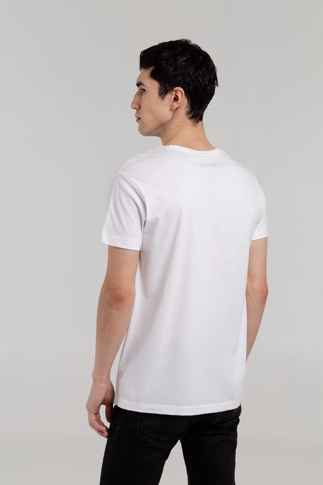 Мужская футболка с круглым вырезом. Двухслойная резинка предохраняет воротник от деформации после стирки.
