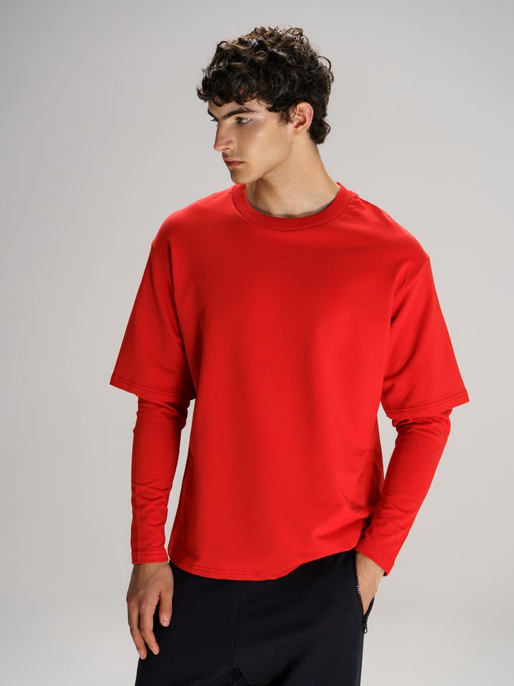 Футболка оверсайз с двойным рукавом Kosmos, красная