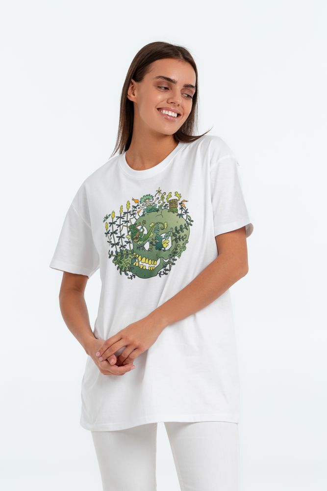 Дизайн футболки «Серенада» представляет собой своеобразную русскую готику в остроумном переосмыслении художника.