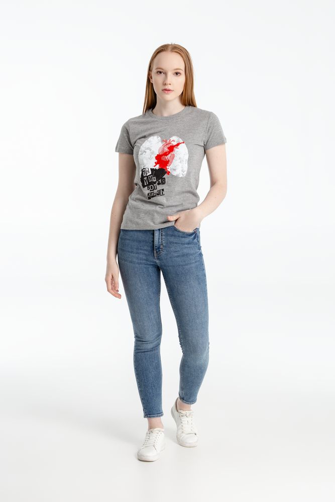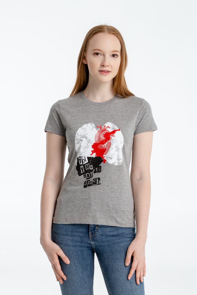 Футболка женская «Ты у меня вот здесь», серый меланж