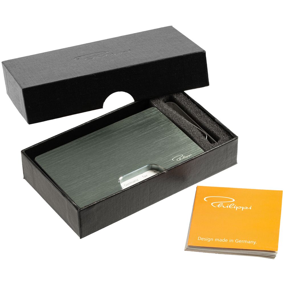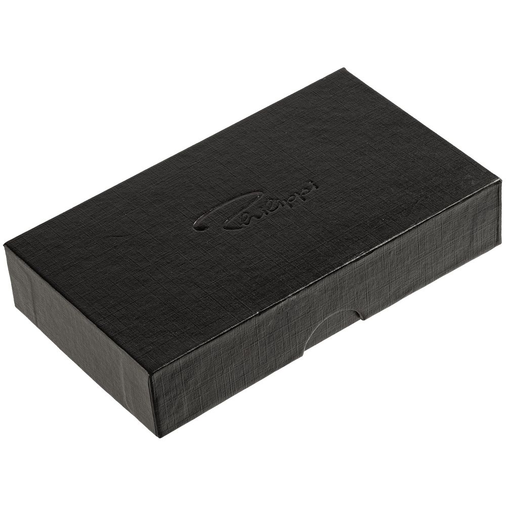 Две части футляра с RFID-защитой соединены резинкой, что позволяет использовать его для большого количества карт. Футляр вмещает до 25 пластиковых карт или до 70 визиток.