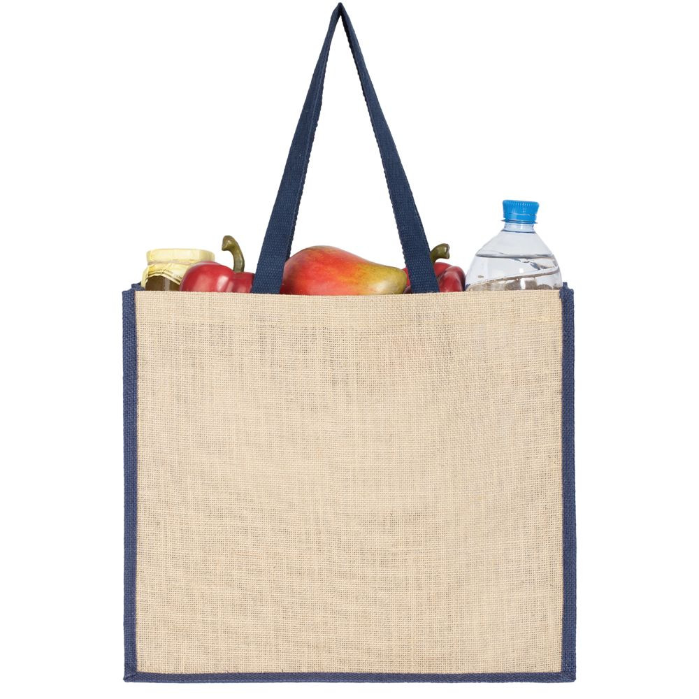 Холщовая сумка для покупок Bagari с синей отделкой