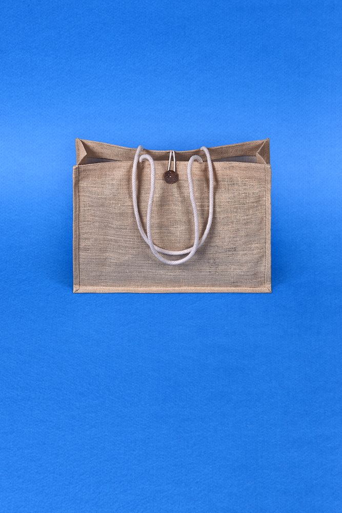 джут, плотность 240 г/м², ламинированный; ручки — хлопок |