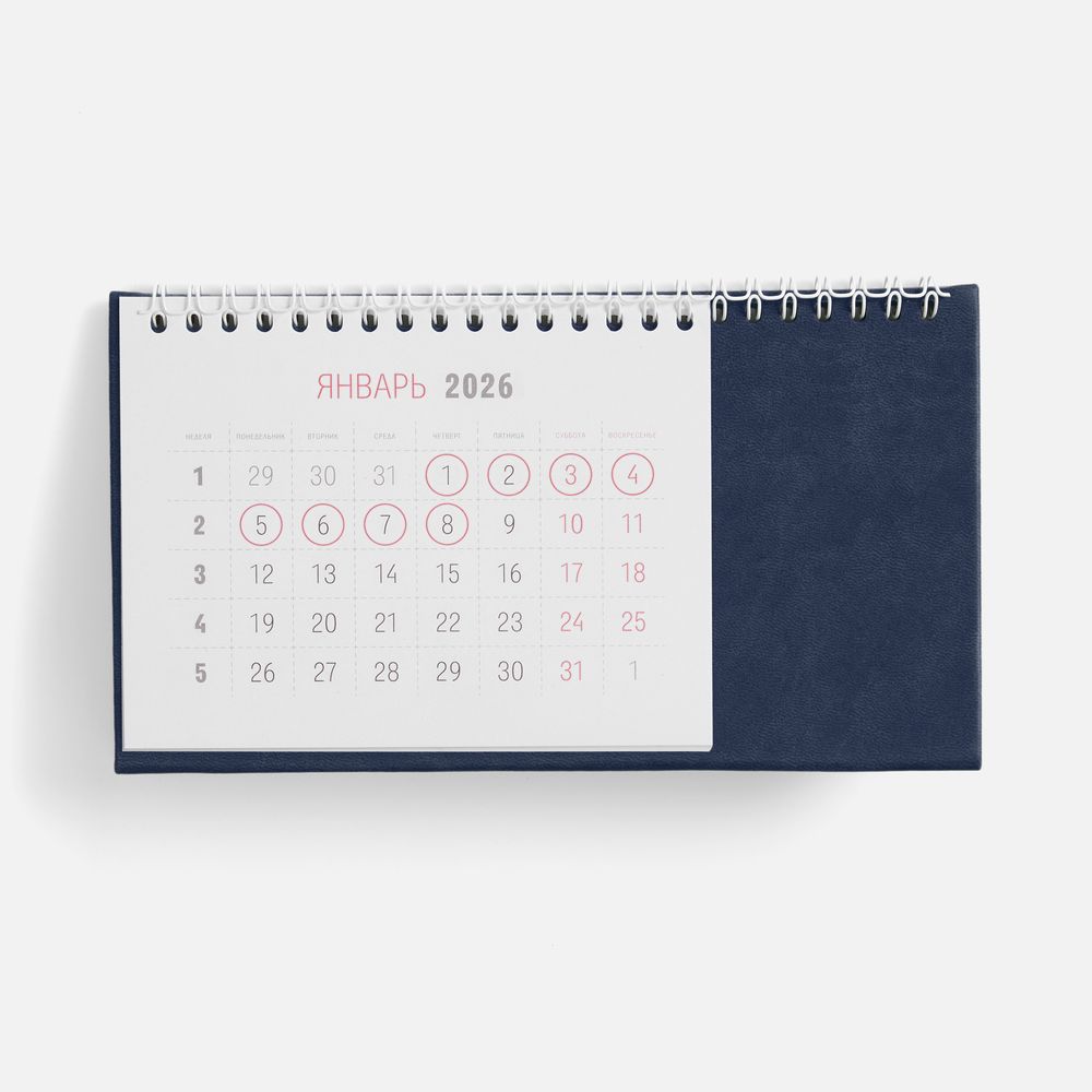Настольный, перекидной календарь-домик выполнен из материала Latte, темно-синий ХХ.