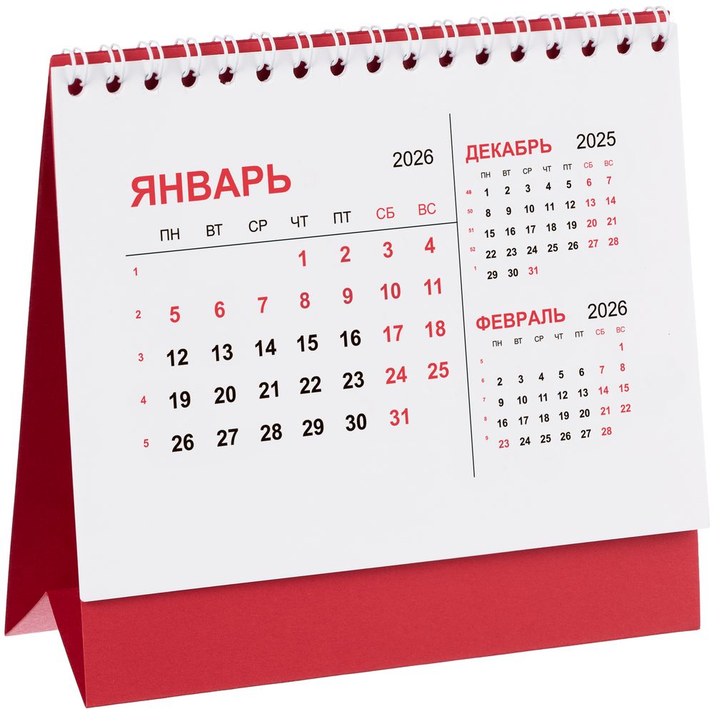 Компактный настольный календарь с датировкой на 2026 год.