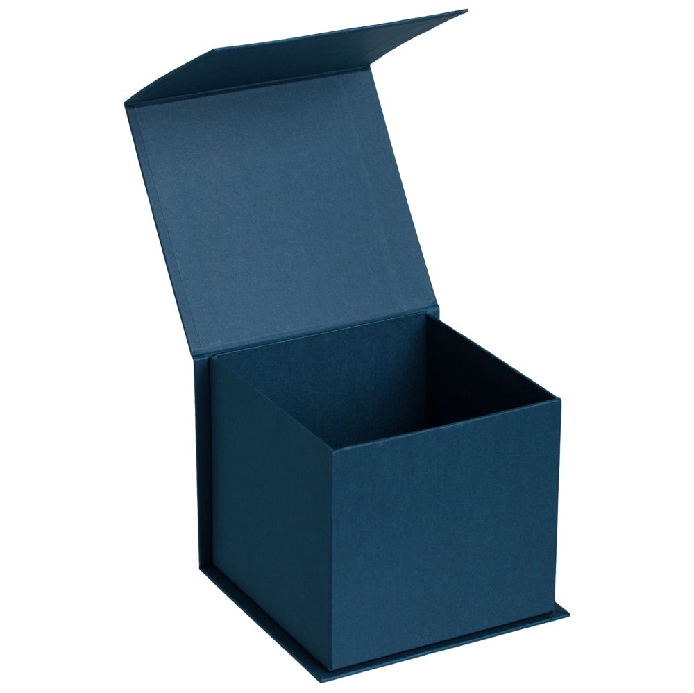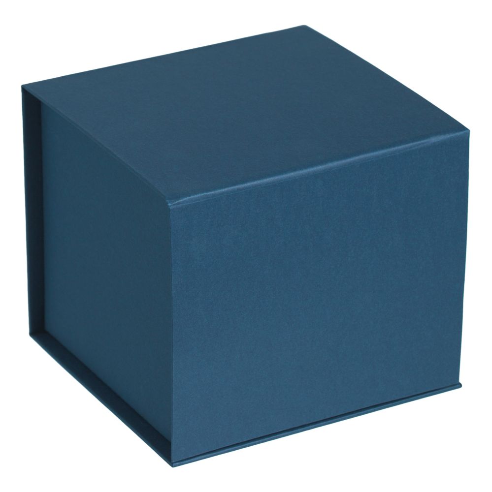 Изготовлена из переплетного картона 1,5 мм, кашированного дизайнерской бумагой Malmero «Благородный синий». Крышка на магните.