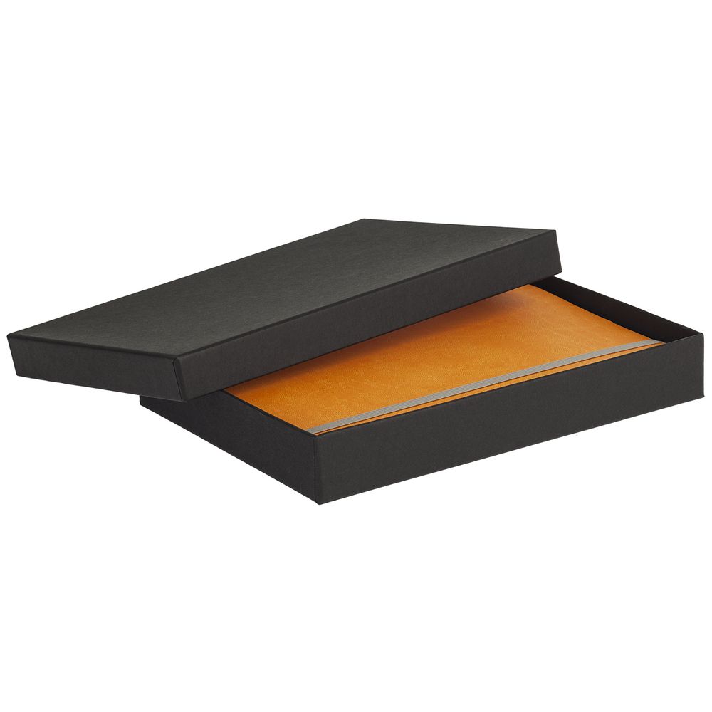 Коробка изготовлена из переплетного картона, кашированного гладкой дизайнерской бумагой Malmero.