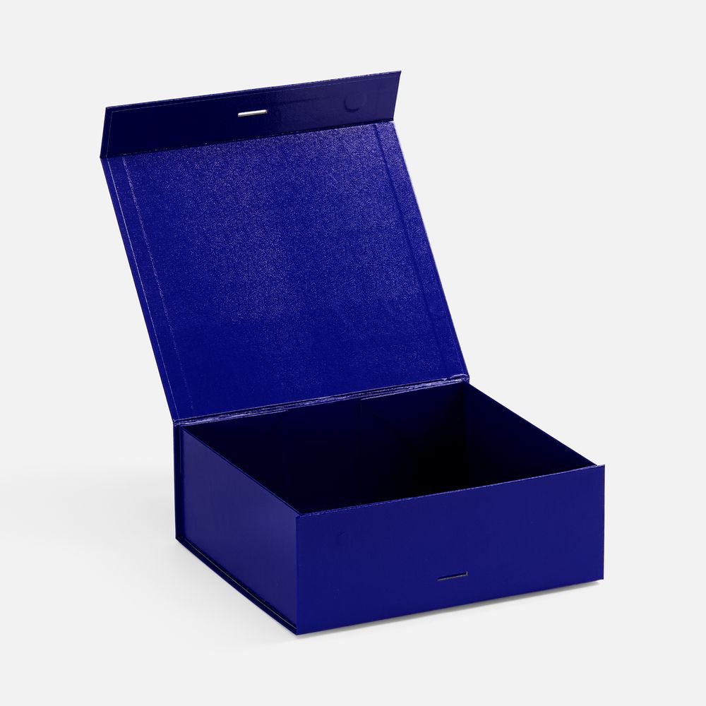 Коробка из переплетного картона с лайнером, ламинированым полуглянцевой текстурной пленкой и устойчивого к царапинам. Крышка на двух магнитах дополнительно фиксируется репсовой лентой.Толщина картона 2 мм.
