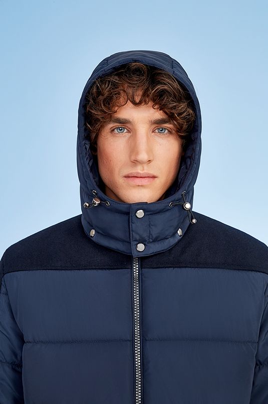 верх — полиэстер 100%; подкладка — полиэстер 100%, 210Т; набивка — полиэстер 100%, плотность 200 г/м²; кокетка и вставка на рукавах: 57% — шерсть, 34% — полиэстер, 5% — акрил, 4% — нейлон; полиуретановая пропитка |