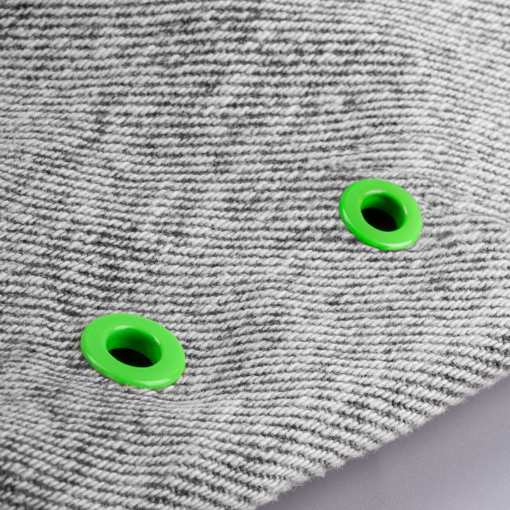 При монтаже в изделии проделывают отверстие соответствующего диаметра, с одной стороны в него вставляют втулку люверса, а с другой надевают на втулку шайбу и закрепляют путем развальцовки втулки. Если у вас нет специального инструмента для установки люверсов, рекомендуем заказывать установку люверсов у нас.
