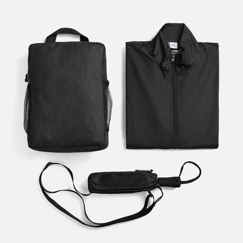 Autumnity — набор с особым осенним настроением. Практичная и лаконичная ветровка в комплекте с компактным зонтом надежно защитят от капризов погоды, позволяя оставаться на высоте в любой ситуации. А легкий вместительный рюкзак станет незаменимым спутником в любых путешествиях в городе и за его пределами.Рюкзак выдерживает нагрузку до 6 кг.