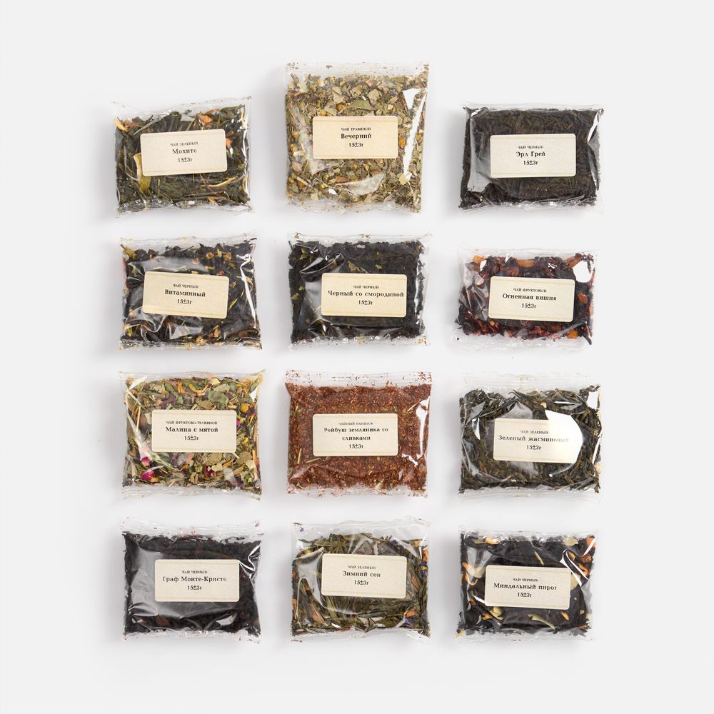 - Черный со смородиной. Состав: черный чай среднелистовой, лист черной смородины, черная смородина сублимированная, красная смородина сублимированная, ароматизатор «Смородина».
