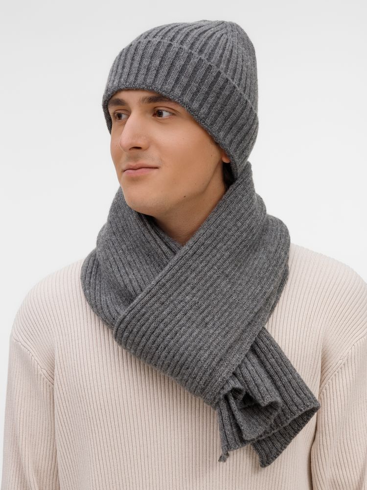 Шапку можно носить двумя способами: плотно прилегающей к голове или слегка приподнятой на макушке для современного силуэта. Шарф оптимальной длины и ширины позволяет экспериментировать с вариантами драпировки. Набор станет идеальным спутником для городских прогулок и поможет создать элегантный образ без лишних деталей.