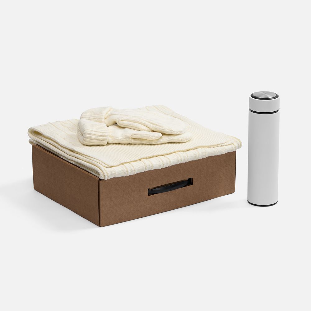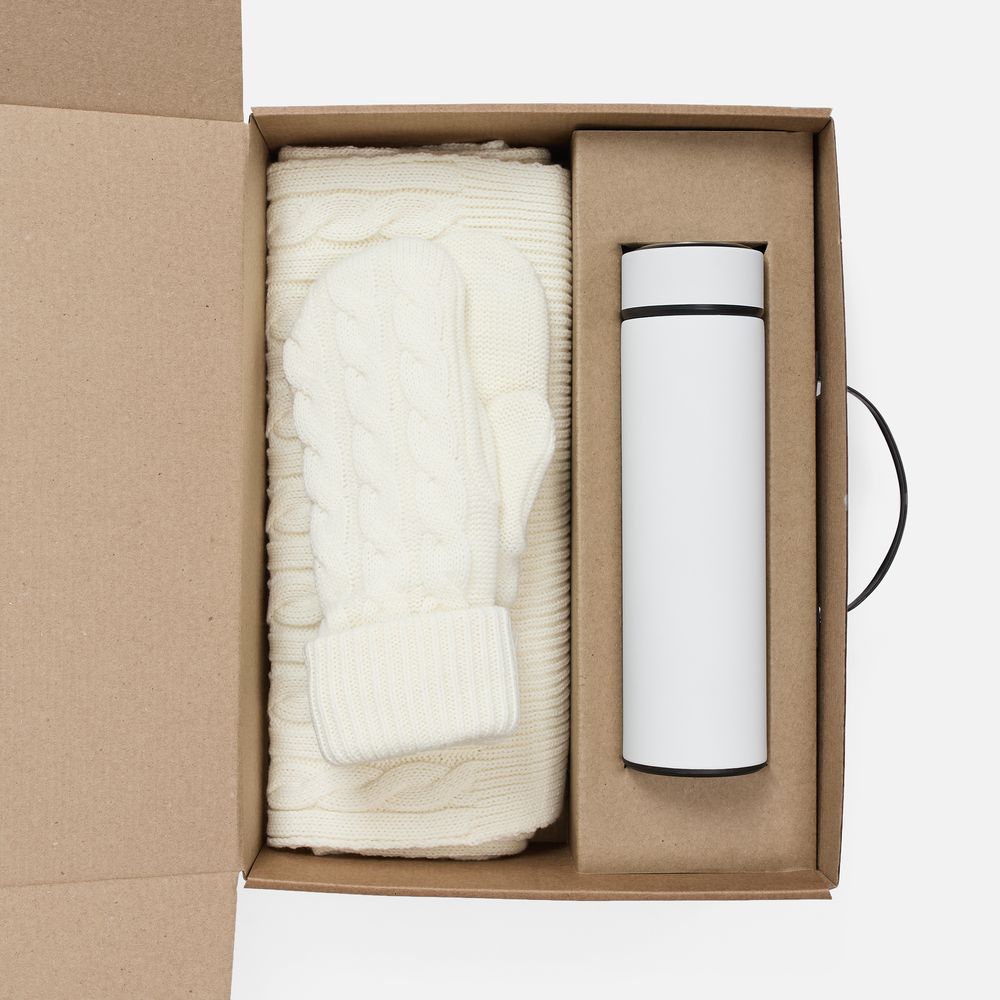 шарф, варежки — акрил 100%; термос — нержавеющая сталь, 304; покрытие софт-тач; коробка — микрогофрокартон |