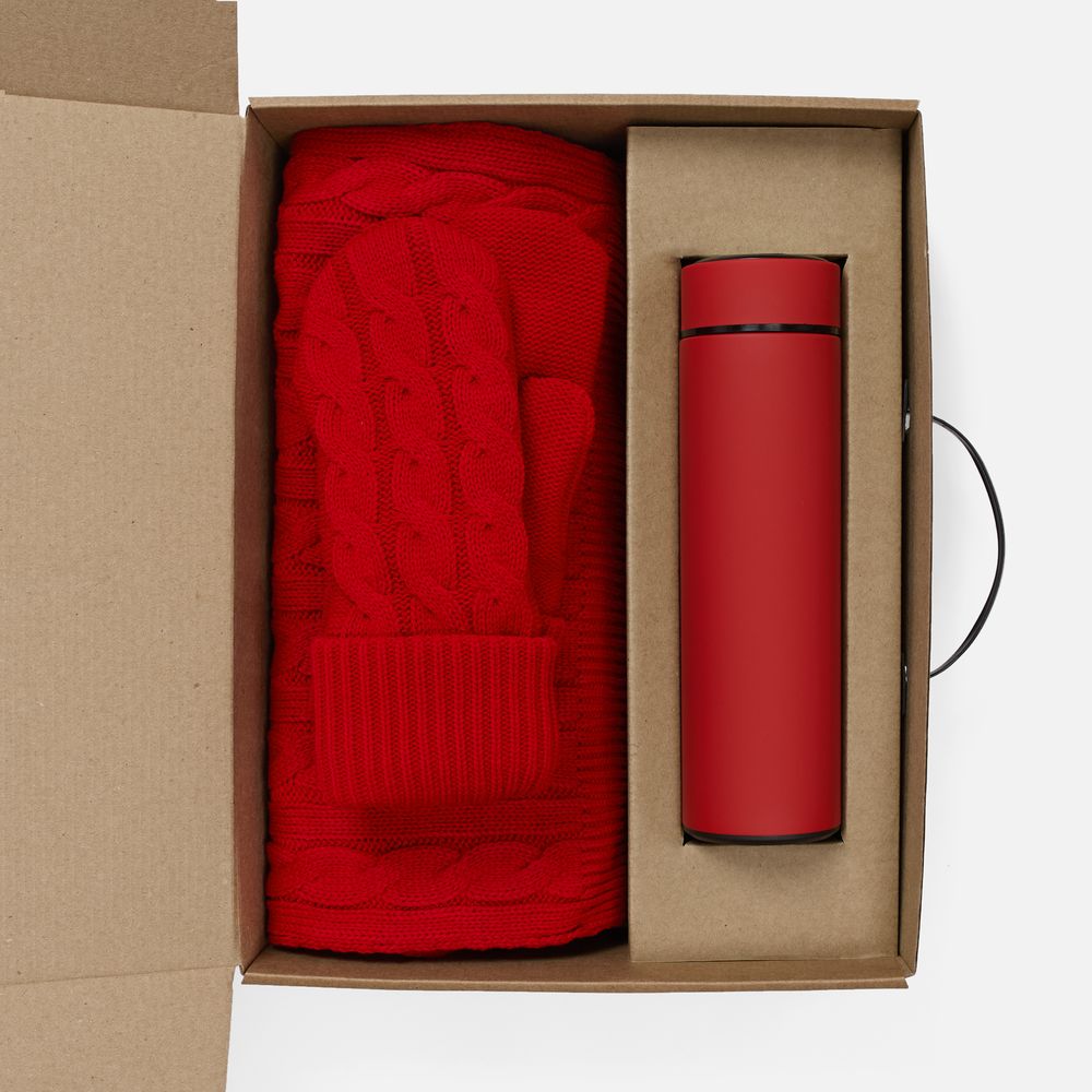 шарф, варежки — акрил 100%; термос — нержавеющая сталь, 304; покрытие софт-тач; коробка — микрогофрокартон |