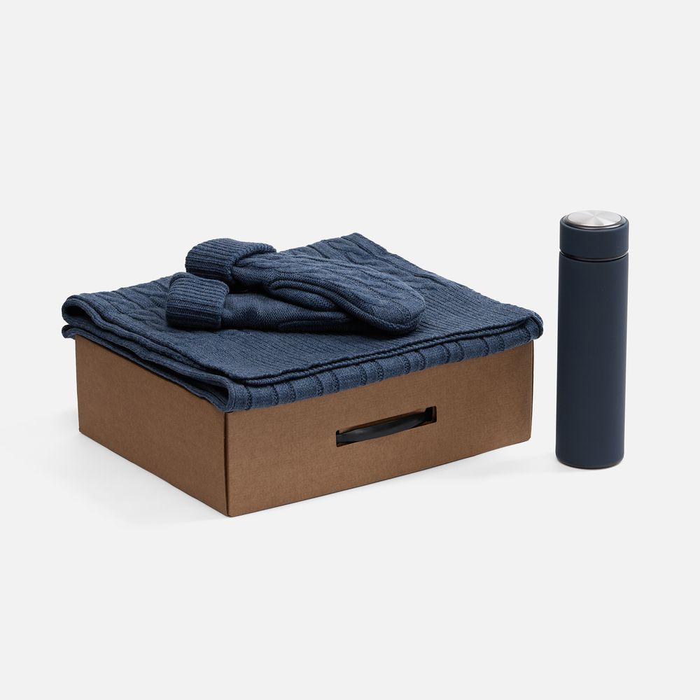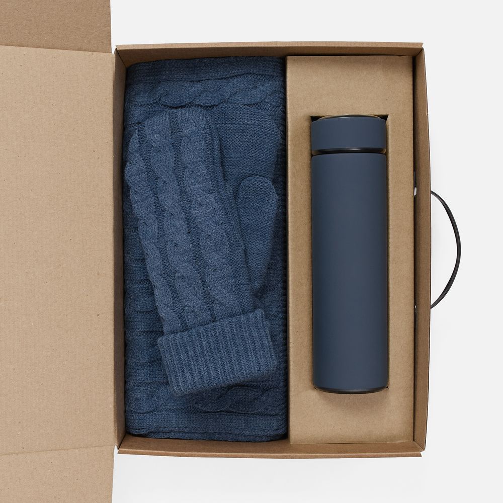 шарф, варежки — акрил 100%; термос — нержавеющая сталь, 304; покрытие софт-тач; коробка — микрогофрокартон |