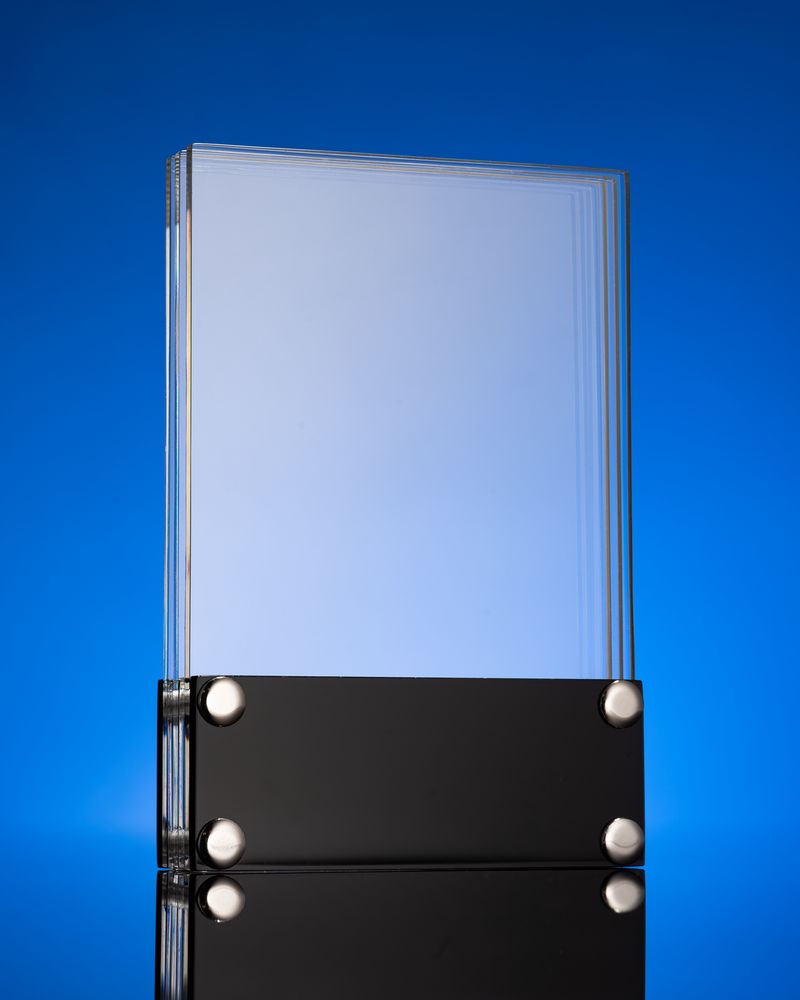 Придать награде законченный вид поможет шильд с гравировкой на основании.Трехслойная награда из акрила с креплением на 4 винтах. Толщина прозрачных панелей — 4 мм.