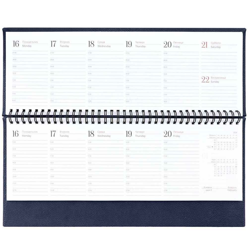 Планинг с твердой обложкой с поролоном, выполнен из материала La Fite, темно-синий ХХ.
