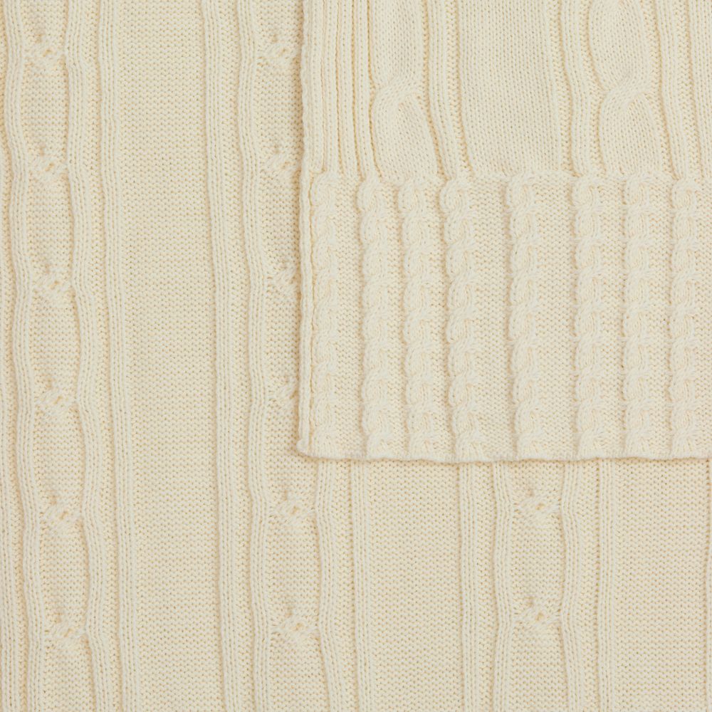 Тонкое переплетение вертикальных кос-жгутов создает благородный стиль, где простота линий встречается с изысканной рельефной текстурой. Плед из мягкого акрила сохраняет тепло, оставаясь удивительно легким и воздушным.