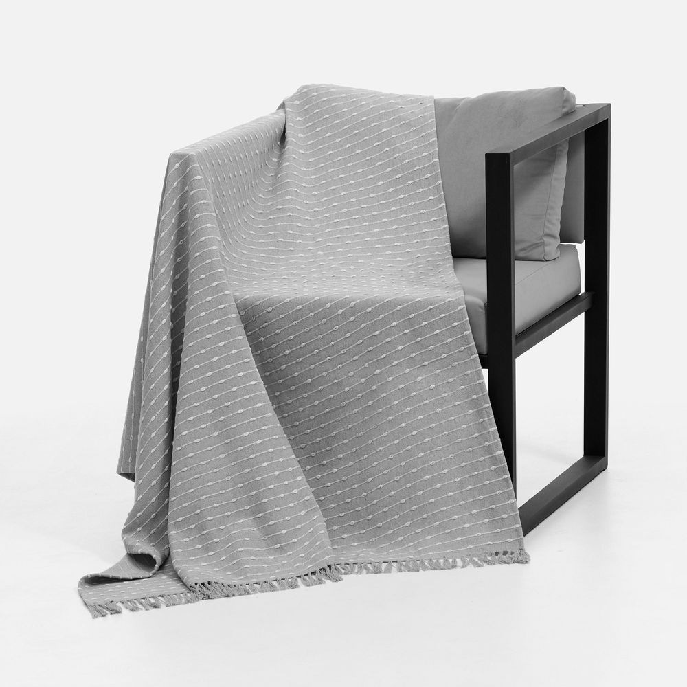 Фактурный узор с элементами счетной вышивки, а также спокойные природные оттенки пледа Shimla создадут приятное визуальное впечатление наряду с комфортными тактильными ощущениями благодаря натуральной основе пледа.
