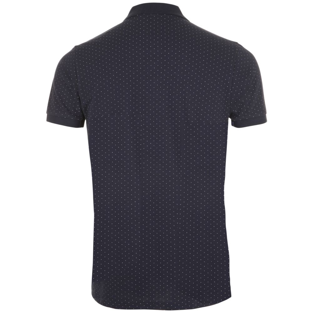 Рубашка поло приталенного силуэта с рисунком в точку. Лейбл производителя в боковом шве изнутри, в шве горловины — только бирка с размером, что позволяет вам нанести свой логотип.