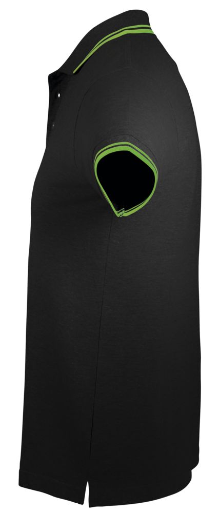 Рубашка поло мужская Pasadena Men 200 с контрастной отделкой, черная с зеленым