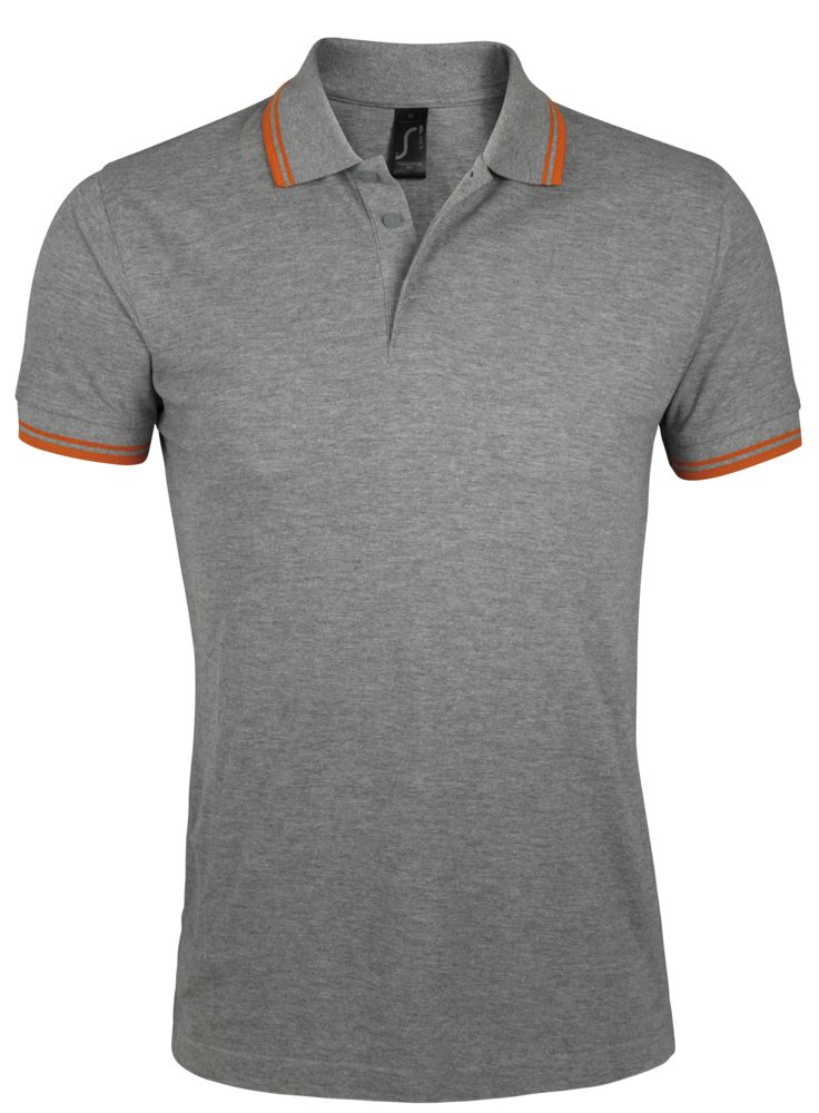 Рубашка поло мужская Pasadena Men 200 с контрастной отделкой, серый меланж с оранжевым