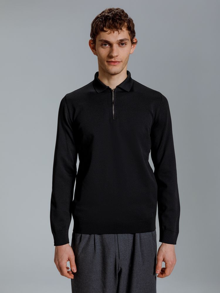 Модная рубашка поло из гладкого полотна идеально садится по фигуре. Металлическая молния на планке делает образ современным и лаконичным.