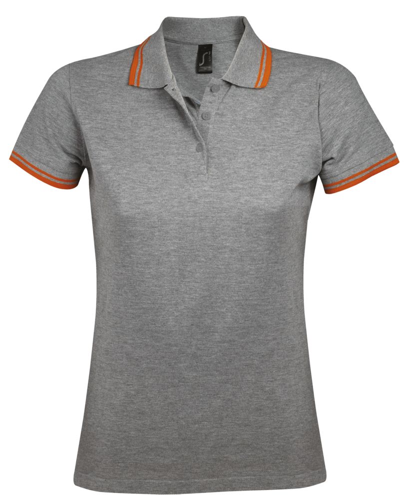 Рубашка поло женская Pasadena Women 200 с контрастной отделкой, серый меланж с оранжевым