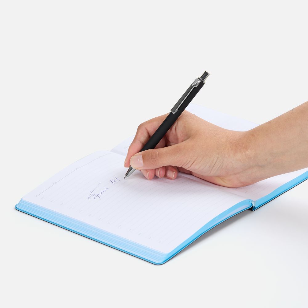 Шариковая ручка с покрытием софт-тач и хромированными деталями. Клип оригинальной формы.