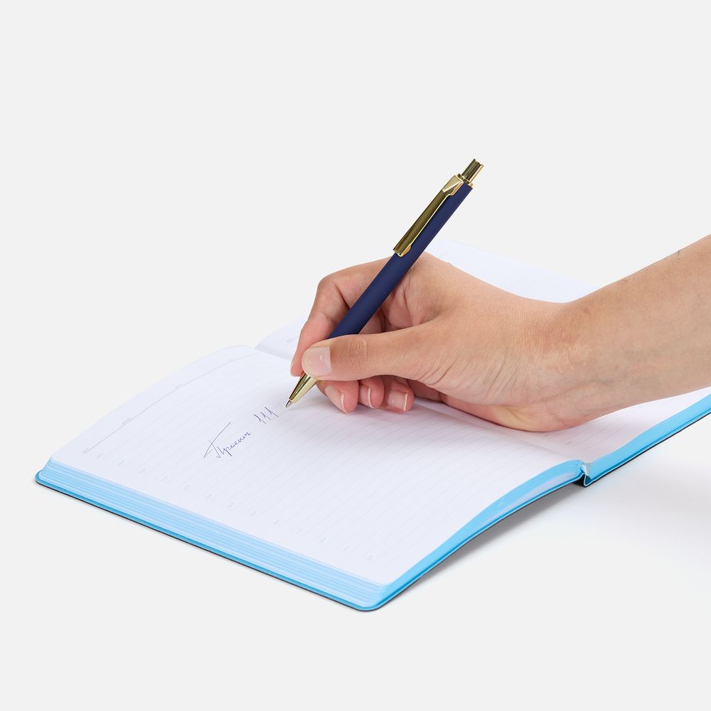 Шариковая ручка с покрытием софт-тач и золотистыми деталями. Клип оригинальной формы.