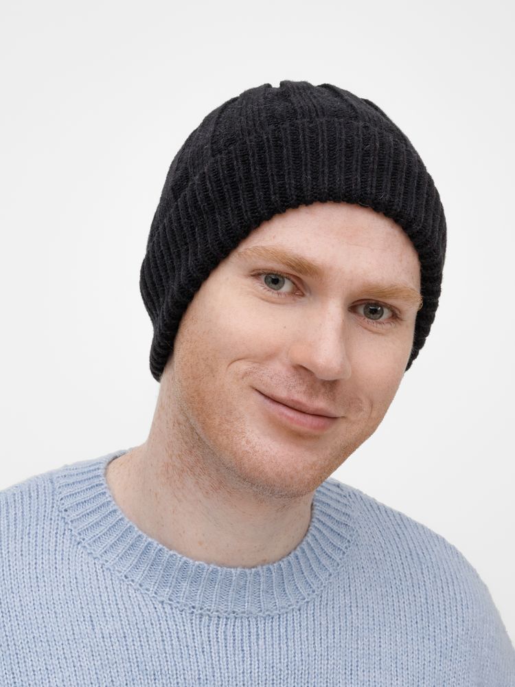 Однослойная шапка фактурной вязки с отворотом.